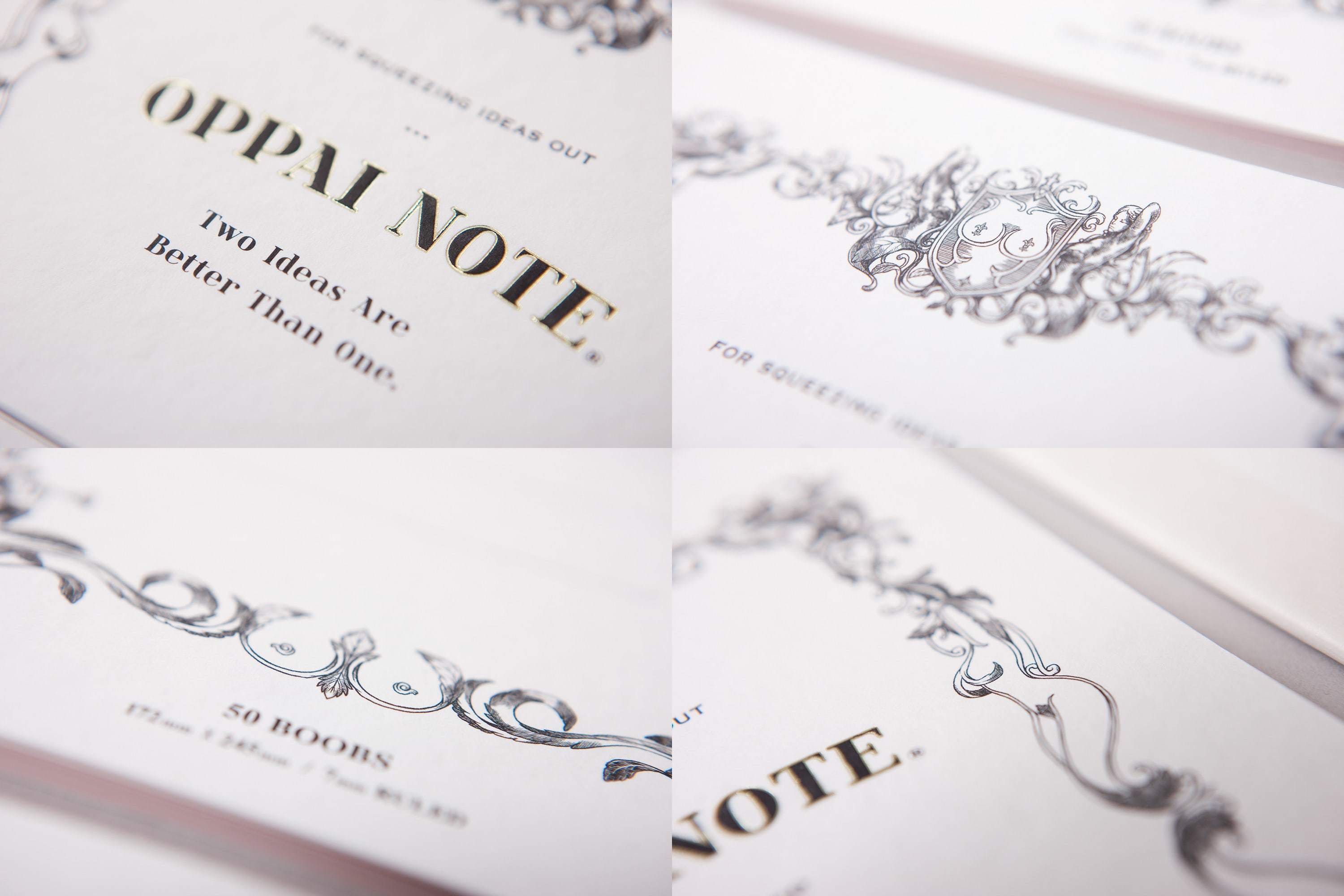 「おっぱい」をノートにする、という企画自体は、何気ない日々の会話の中から生まれたアイデアです。母なるものの象徴であり、誰からも好かれるであろう「おっぱい」。ある種、神聖で不可侵な領域に、自由自在に字を書くことができたら、面白いんじゃないか。企画段階からすでに「OPPAI NOTE(おっぱいノート)」の構想はできあがっていました。「ノート」である以上、ノート本来の機能を兼ね備えていることが大前提。「おっぱい」を美しく印刷するためには、発色の良い紙であると同時に、文字が書きやすい紙質、ページがめくりやすい紙厚を追求しました。また、アートとして楽しんでもらえるように、最低限のレタッチは加えたものの、何度も色校正を繰り返し、極力「おっぱい」の持ち味を重視。肌の色、かたち、大きさが、それぞれ違う個性豊かな「おっぱい」を丁寧に表現するべく、ページネーションも幾度となく検証しました。とことん良いモノをつくれば売れるはず。そんな、理想を追い求めた自社プロダクトだからこそ許される実験的なモノづくり。製造単価目標額の逆算で、1万冊を刷ることになりました。
